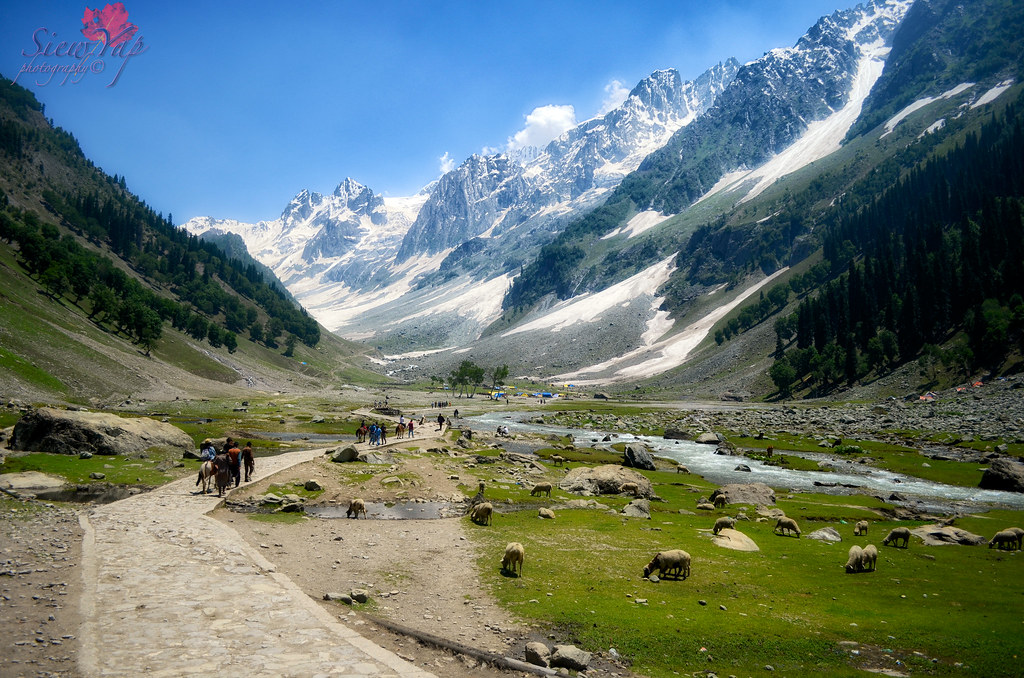 Pahalgam (Valley of Shepherds) – It is a resort set in a pristine village lying next to the Lidder River. Once a humble shepherd’s village with breathtaking views. now it is Kashmir’s premier resort, cools even during the heights of summer. It is situated at an altitude of 2,130 m above sea level and has a golf course at 2400 meters above the sea level. Surrounded with fragrant pine forests, the idyllic resort includes a golf course and spots for angling. The bubbling Lidder harbors a sizeable population of rainbow trout and mahaseer to ensure you don’t come away disappointed. The nearby forested slopes are home to the Himalayan brown bear.